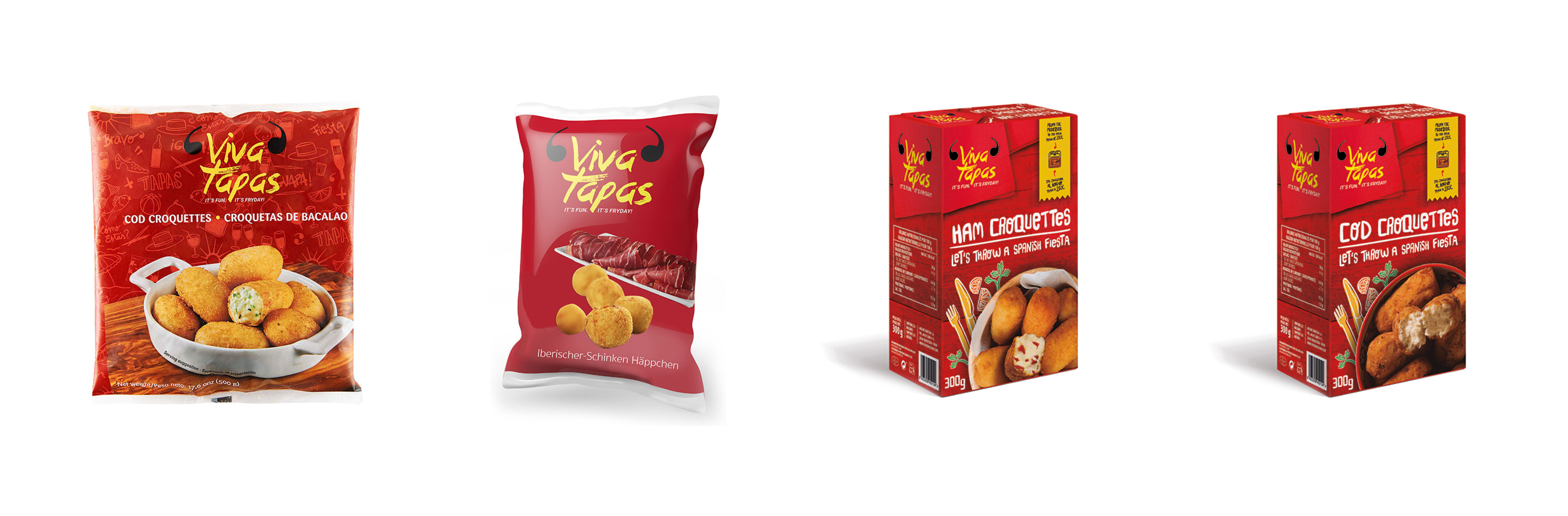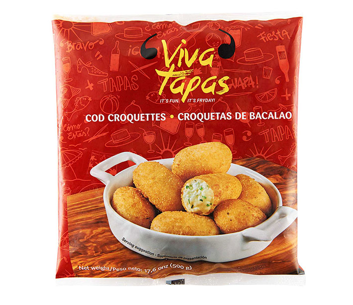 Cremosa bechamel elaborada con leche fresca y jamón ibérico, bacalao, marisco, queso azul, chorizo picante o cualquier sabroso ingrediente que te puedas imaginar. Podemos hacerlas de varias formas, desde pequeños bocados de 12 g. hasta croquetas de 80 g. Son el acompañiento ideal en cualquier aperitivo en España.